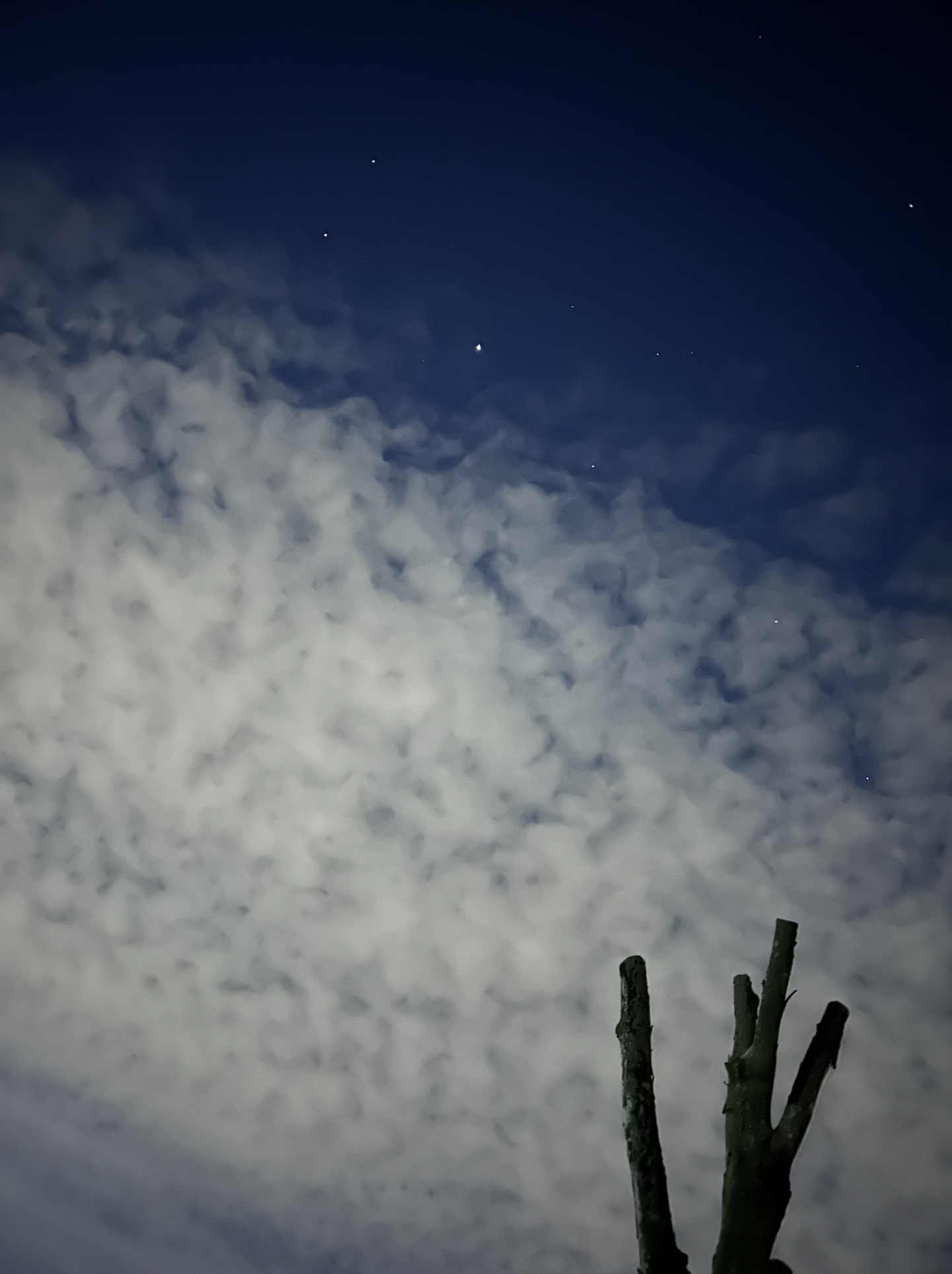 A little babysitting and a little dance and a little fencing and a little Olympics coax us into the evening and a roll of cloud under stars towards a cooling night...