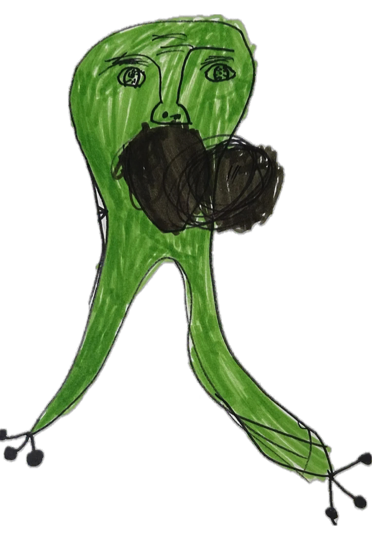 ...Patience walks out of her room snuggled into a secondhand Alaska hoodie from her aunt... clacking her press-on nails together... she's already drawing a caricature of “Puck the Skinny Green Bullfrog” as he prepares to leave for another neighborhood run...
