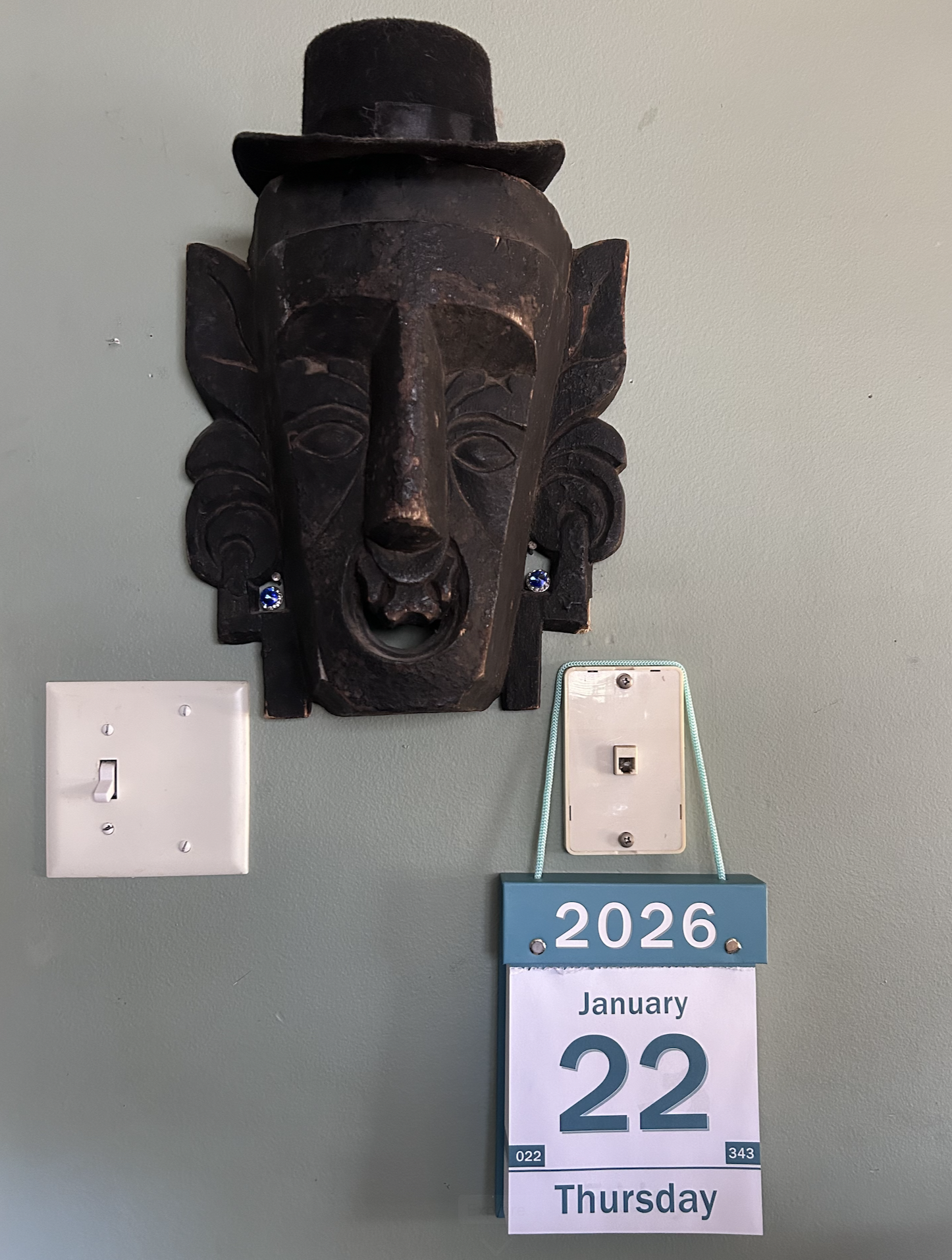A little short of sleep that morning trying to focus on my heavy to-do list... while Yali is busy whirling and whirling and whirling an X-Acto blade pen attached to a power drill... while Patience sits at the table with tears in her eyes missing Puck... she later distracts herself reading aloud recipes for white loaf bread and cake pops from her cookbook before tearing another page off the wall calendar counting down all the days till big bro returns...