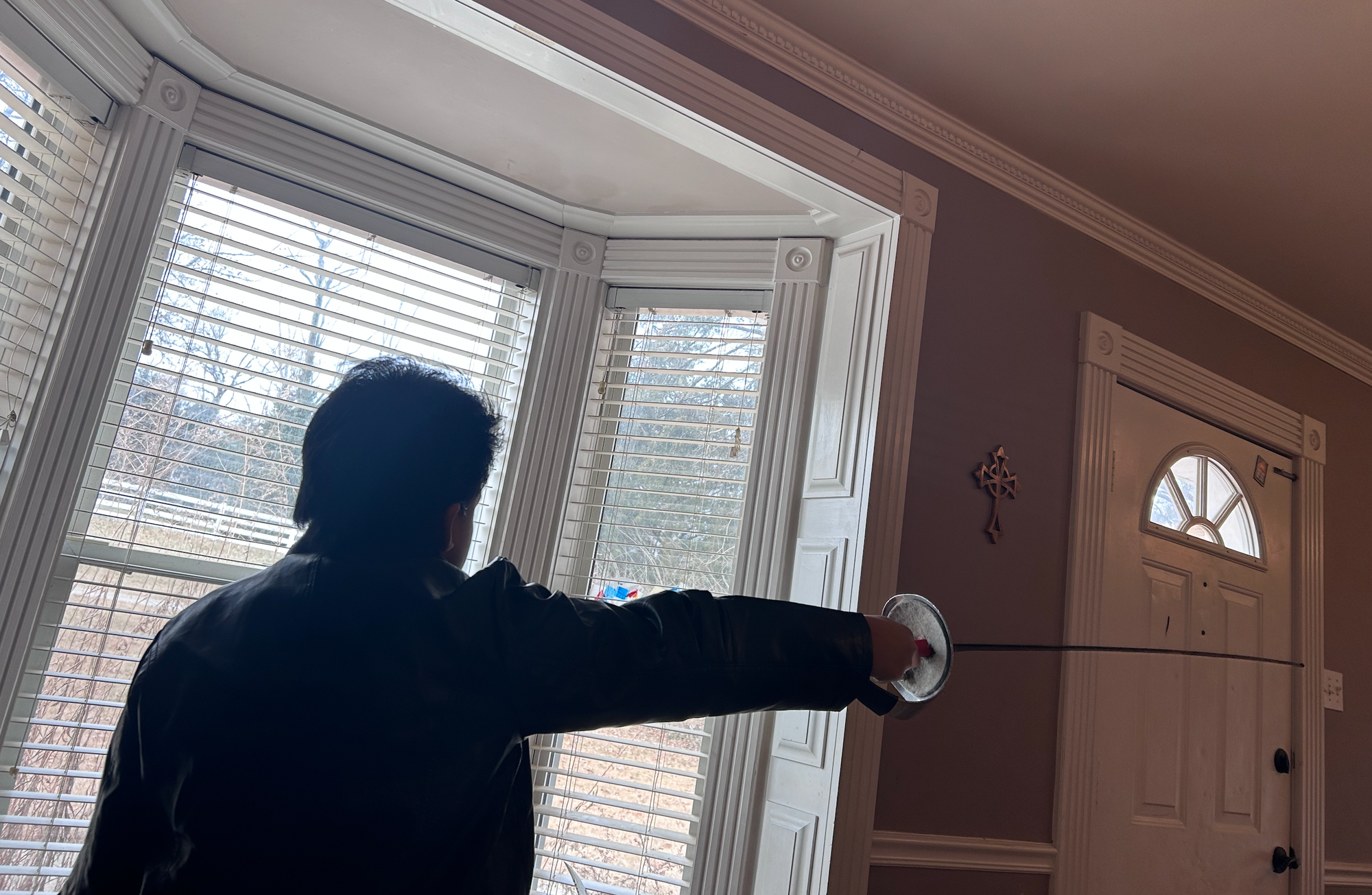 Yali is full-pirate in the morning... it's an all-out drag-down slice-out one-man sword fight against himself with his saber and his aunt's fencing foil walking the back deck of the living room couch in full gear and a cross pendant around his neck to blasting Pirates of the Caribbean soundtrack... somehow also eating a cream cheese bagel for breakfast...